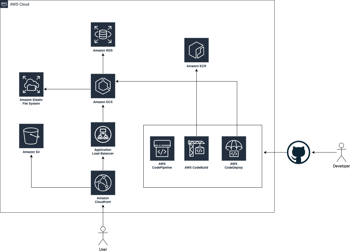 EC2やECSを用いたスケーラブルなアーキテクチャの設計、S3やCloudFrontを活用した高速かつコスト効率の高いコンテンツ配信、RDSやLambdaを組み合わせた効率的なサーバーレス環境の構築に対応可能です。